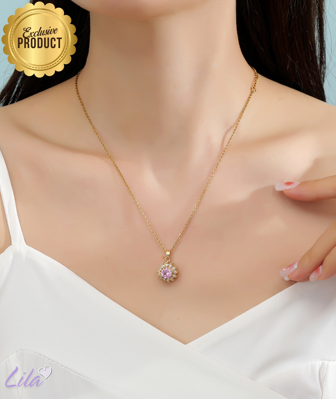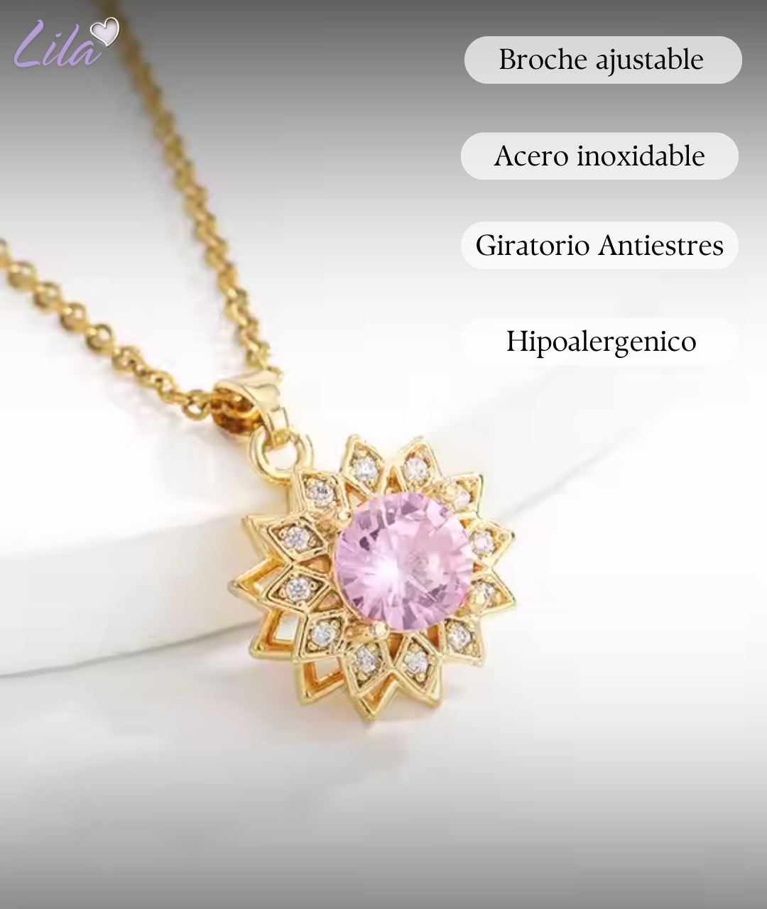 🌻Collar Girasol giratorio🌻Baño oro 18k