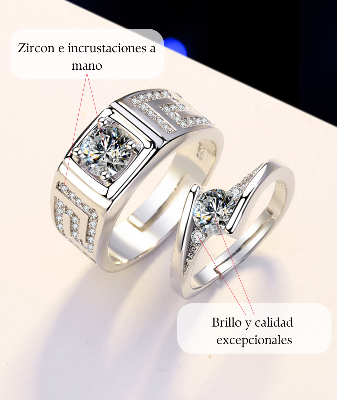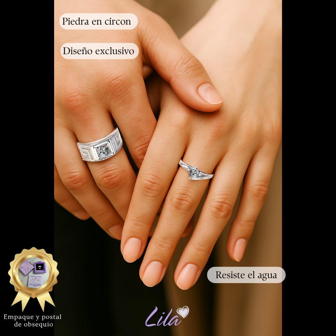 ✨. Este set de anillos es el toque ideal para demostrar que están hechos el uno para el otro."❤️💫💝
